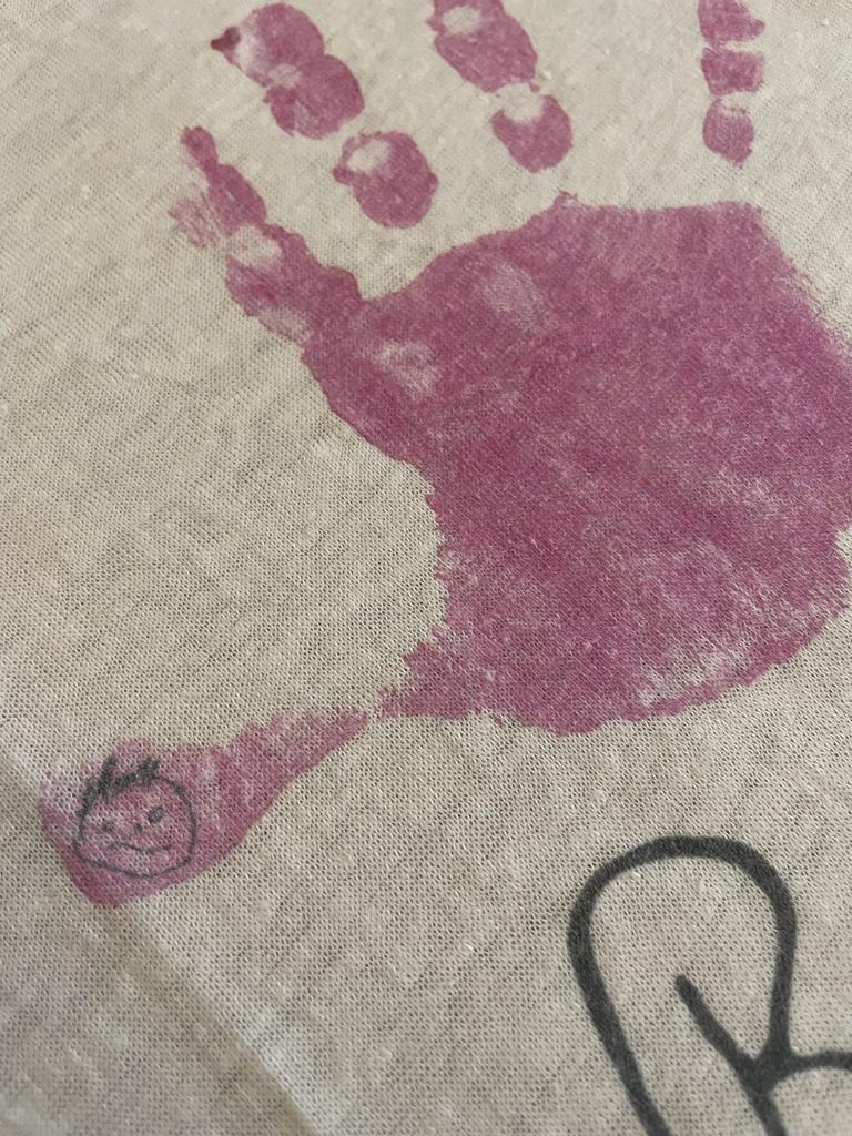 Il più classico dei giochi. Immergere la mano nella vernice e lasciare le proprie impronte digitali. Catturato dalla polizia e schedato su una delle t-shirt Made in Child.👮🏻‍♂️
